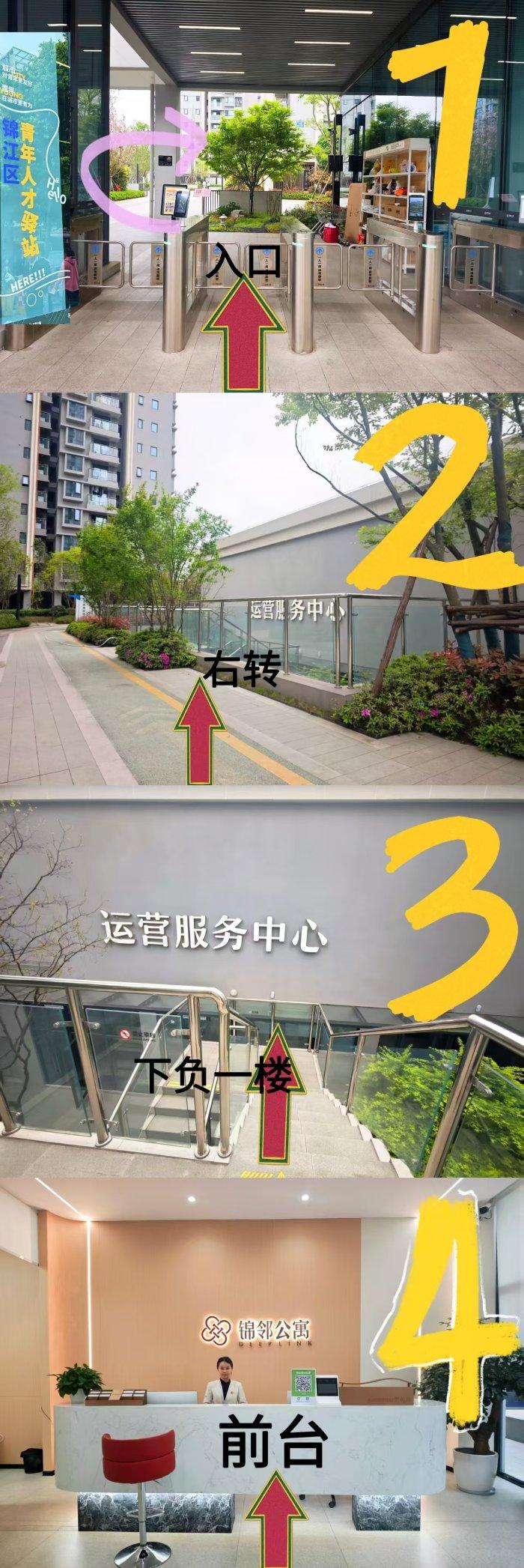 1、公寓前台在负一楼,请仔细查看线路图片,如有疑问可致电公寓前台电话:028-63386368(拨打时间:8:30-20:00)