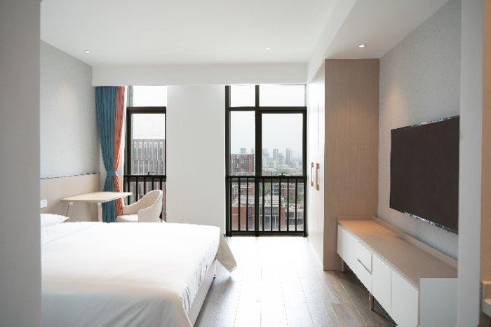 成都天府生物产业孵化园项目A3公寓项目建筑面积14625.18㎡,按酒店式公寓装修标准精装交付,1层大堂514.29㎡(包含阅读区、咖啡区、共享洗衣房、冥想空间配套以及管家服务中心),2-16层客房层,房间共计210套,旨在为生物城园区企业员工提供安全、舒适、健康的酒店式公寓管理服务。